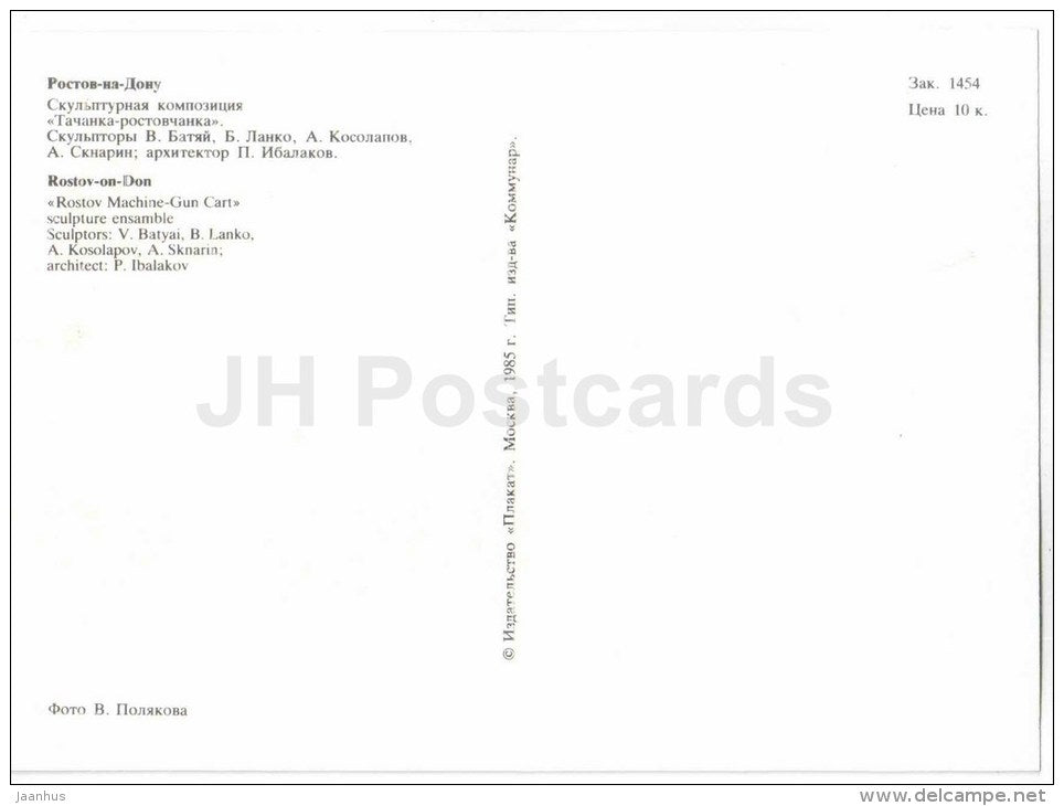 Rostov Machine Gun Cart - sculpture ensemble - horses - Rostov-on-Don - Rostov-na-Donu - 1985 - Russia USSR - unused