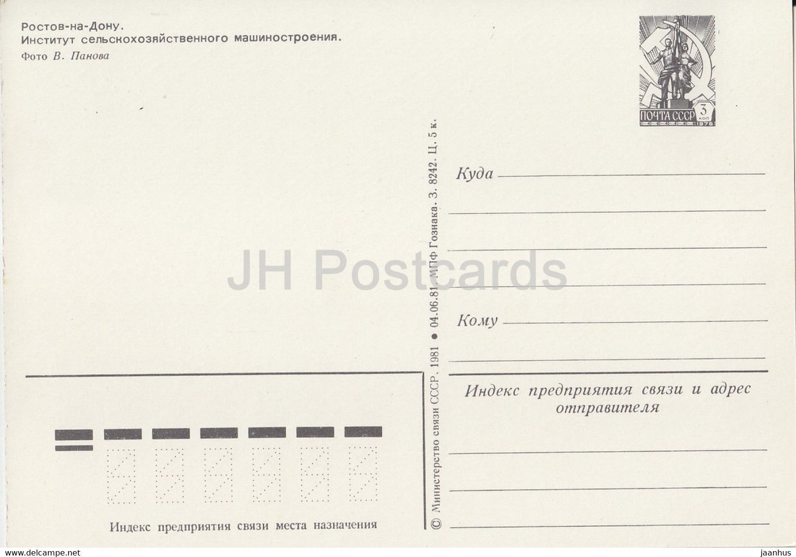 Rostov-on-Don - Institute of Agricultural Engineering - postal stationery - 1981 - Russia USSR - unused