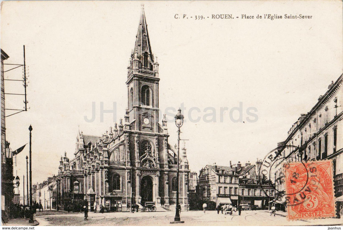 Rouen - Place de l'Eglise Saint Sever - church - 339 - old postcard - 1918 - France - used