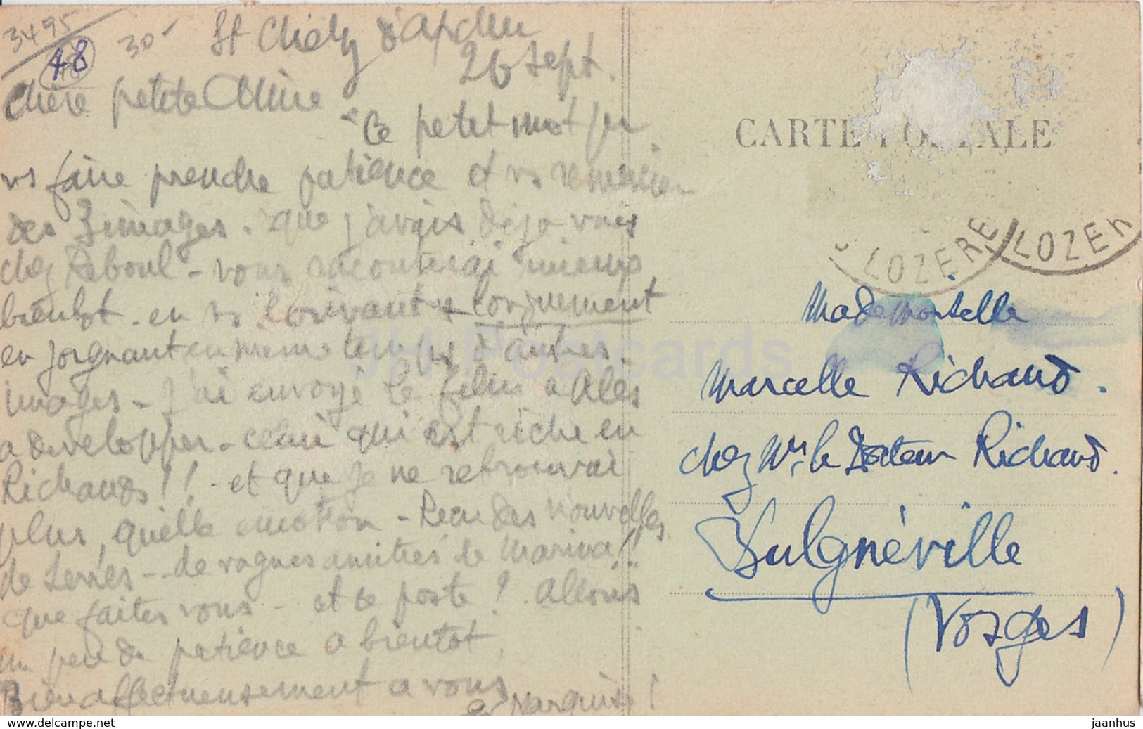 Ruines de Chateau de la Garde et vallee de la Truyere pres St Chely - castle ruins - old postcard - France - used