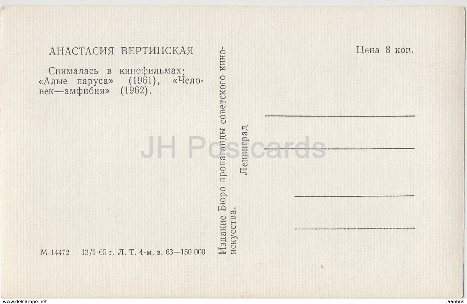 Russian actress Anastasiya Vertinskaya - Film - Movie - 1965 - Russia USSR - unused