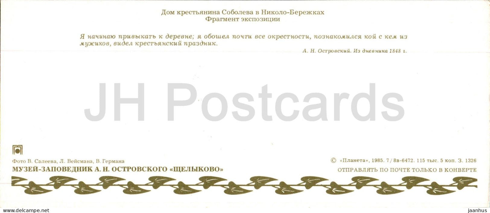 Russian playwright Ostrovsky museum - house of peasant Sobolev - fragment of exposition - 1985 - Russia USSR - unused