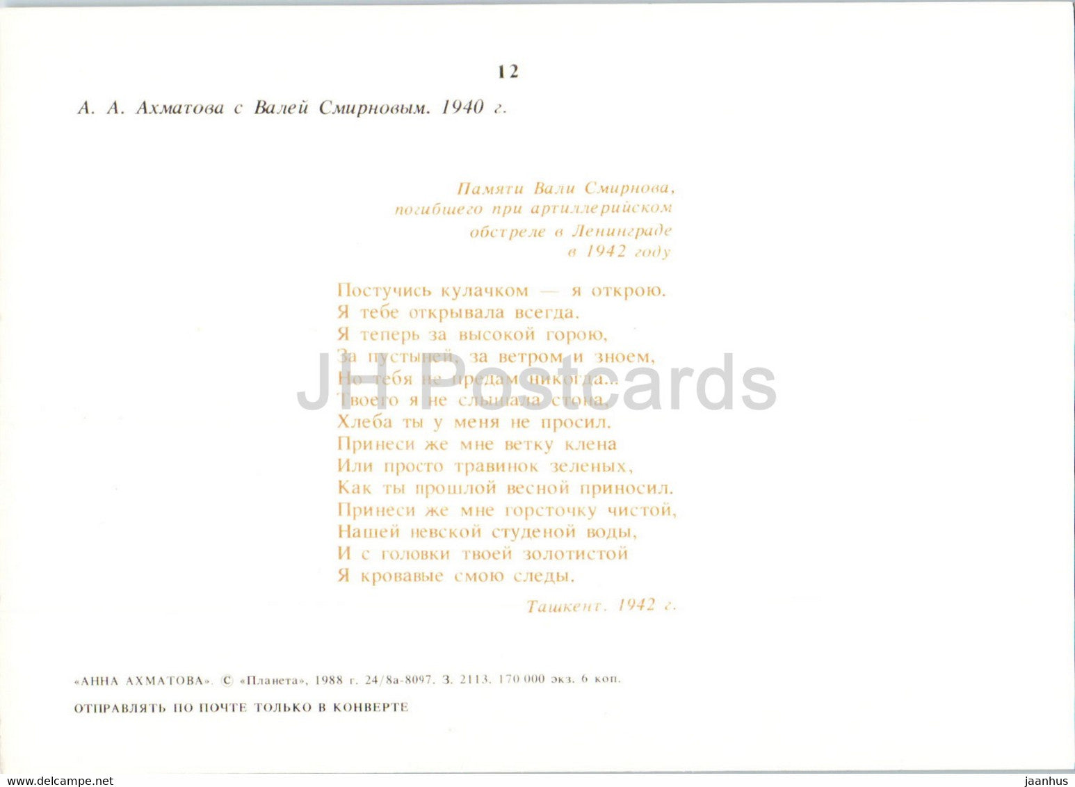 Russian poet Anna Akhmatova - with Valey Smirnov 1940 - 1988 - Russia USSR - unused