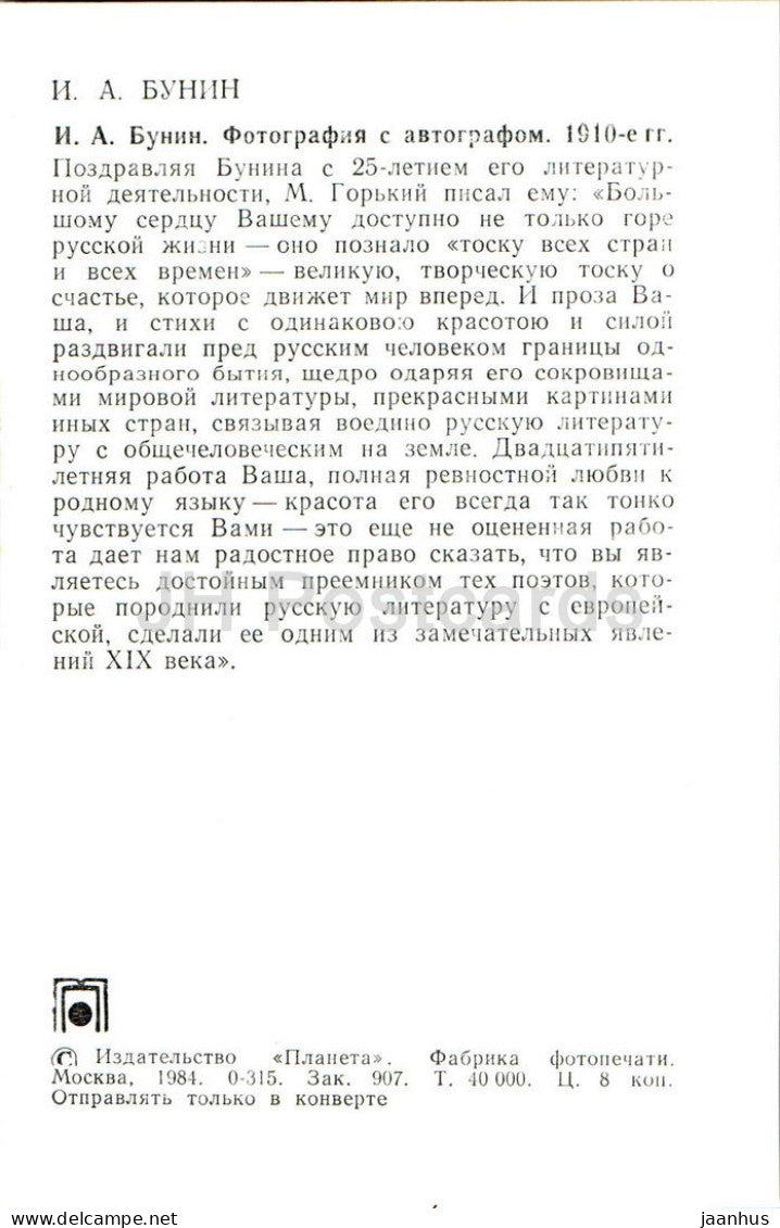 Russian writer Ivan Bunin - in 1910s - 1984 - Russia USSR - unused