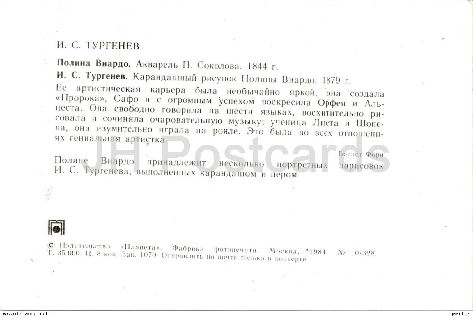 Russian writer Ivan Turgenev - Polina Viardo - drawing - 1984 - Russia USSR - unused