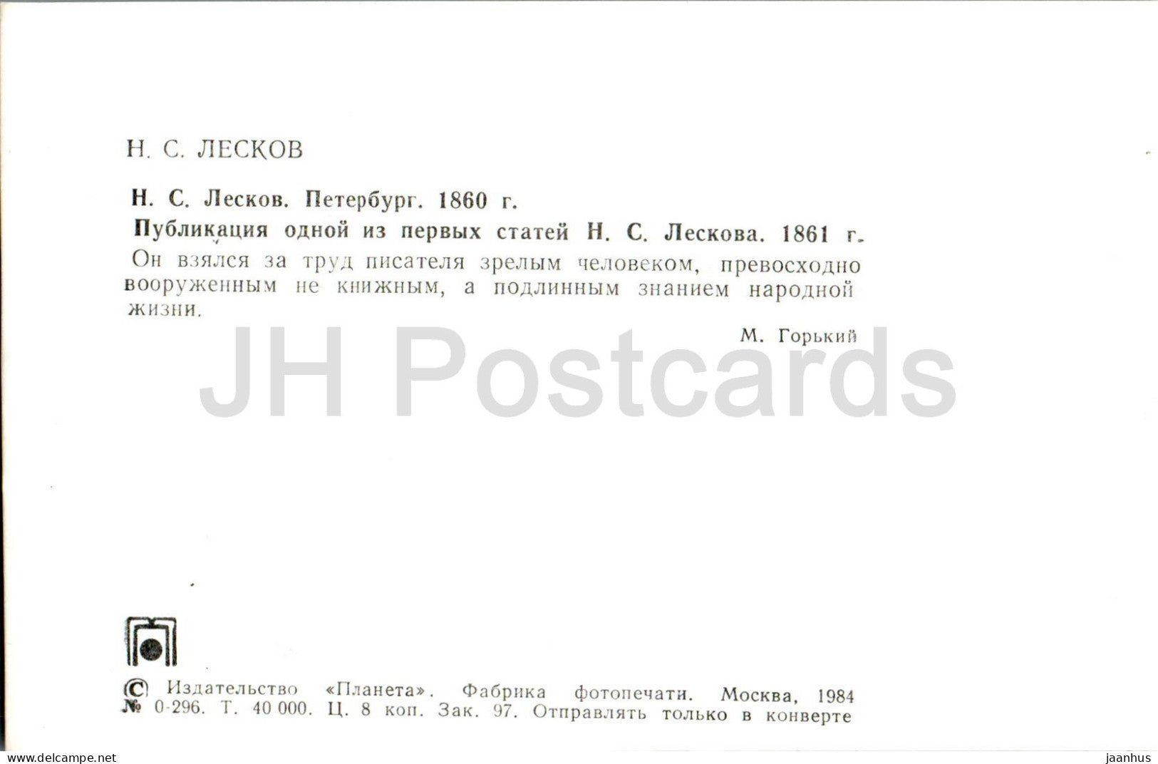 Russian writer Nikolai Leskov - In St Petersburg 1860 - article - 1984 - Russia USSR - unused