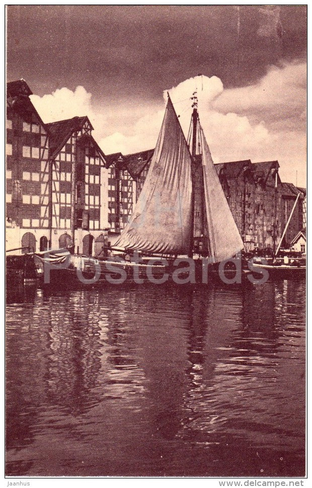 sailing boat on Pregel river . Hundegatt - Kaliningrad - Königsberg - 1990 - Russia USSR - unused