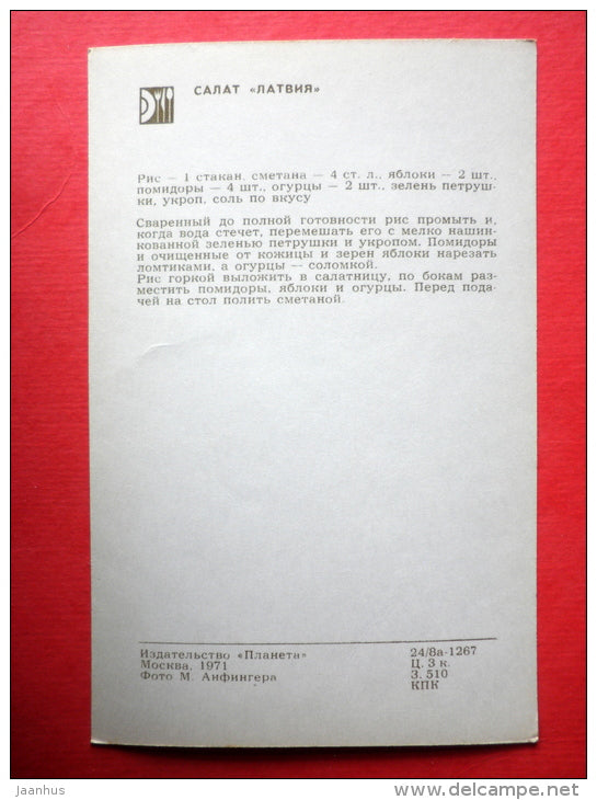 salad Latvia - recipes - Latvian dishes - 1971 - Russia USSR - unused