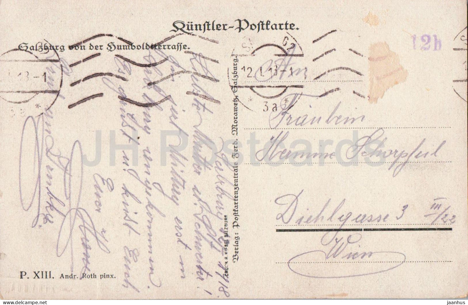 Salzburg von der Humboldtterrasse - Kunstler Postkarte - illustrion Andr. Roth - old postcard - 1918 - Austria - used