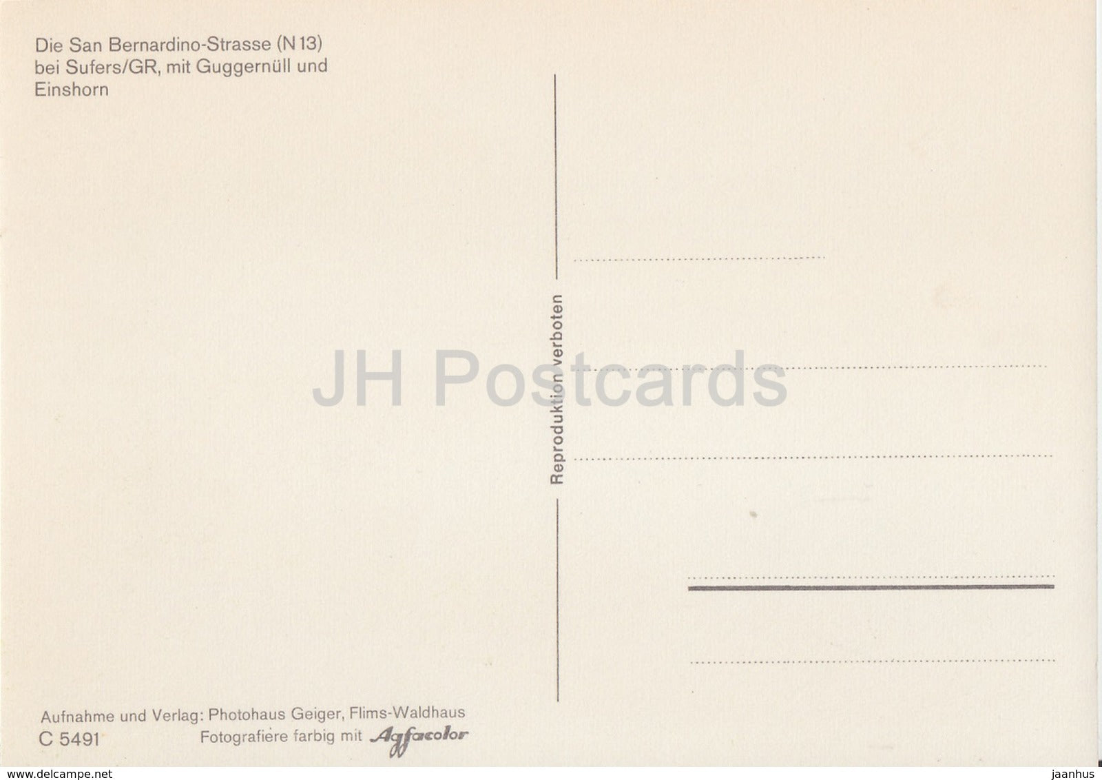 San Bernardino Strasse N13 bei Sufers mit Guggernull und Eishorn - Switzerland - unused