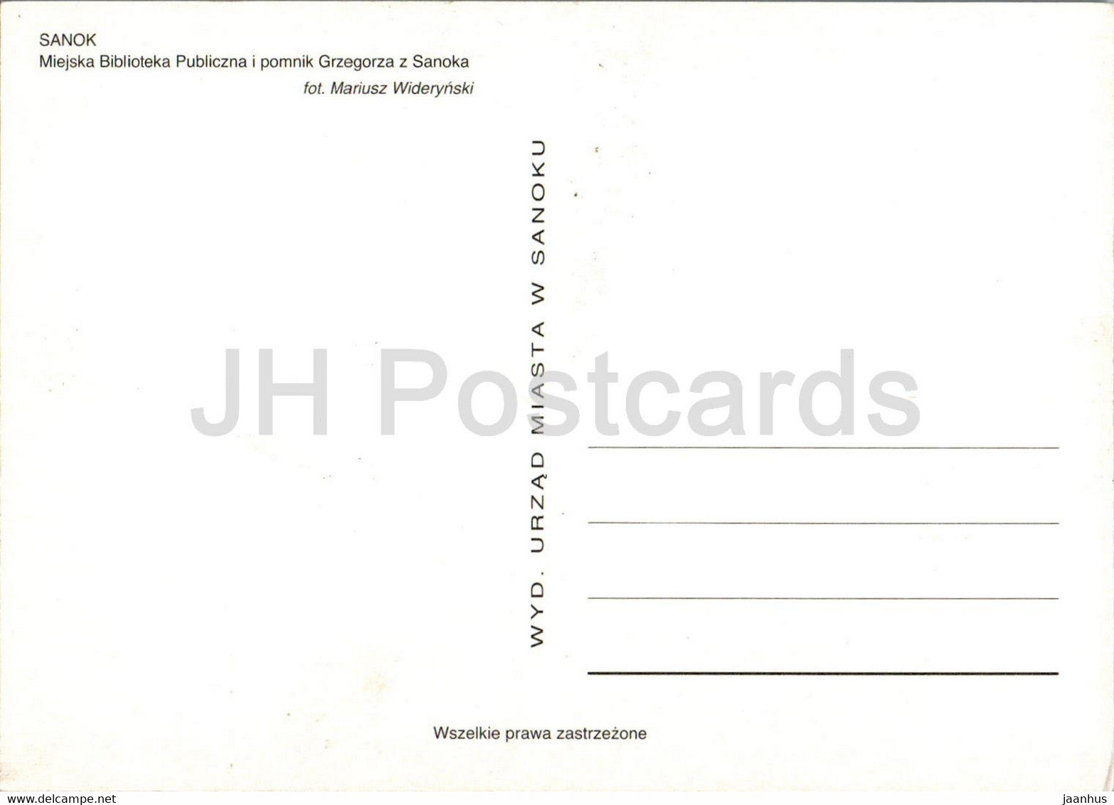 Sanok - Biblioteka Publiczna i pomnik Grzegorza z Sanoka - library - monument of Grzegorz from Sanok - Poland - unused