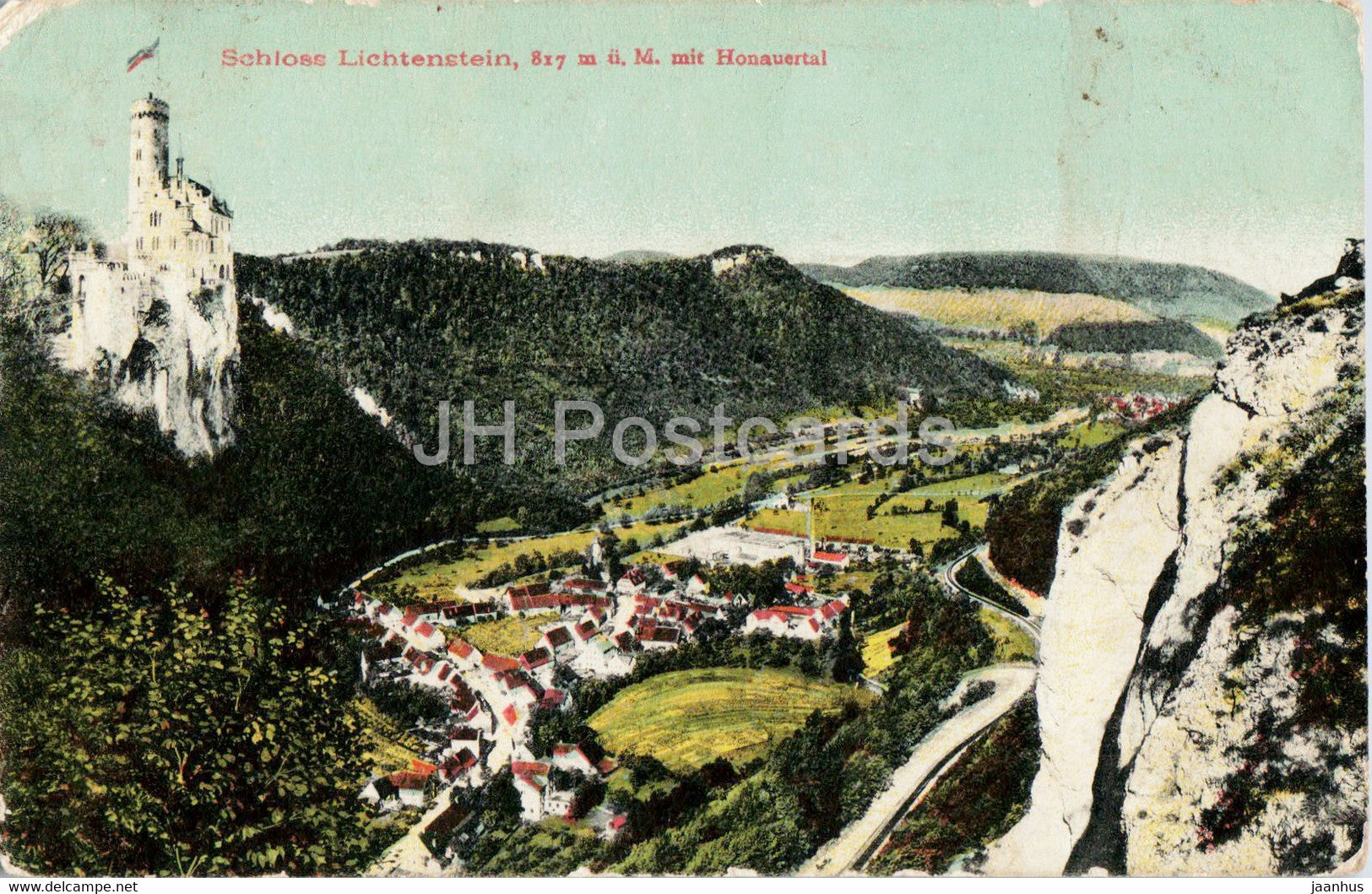 Schloss Lichtenstein 817 m mit Honauertal - castle - 44567 - old postcard - 1912 - Germany - used