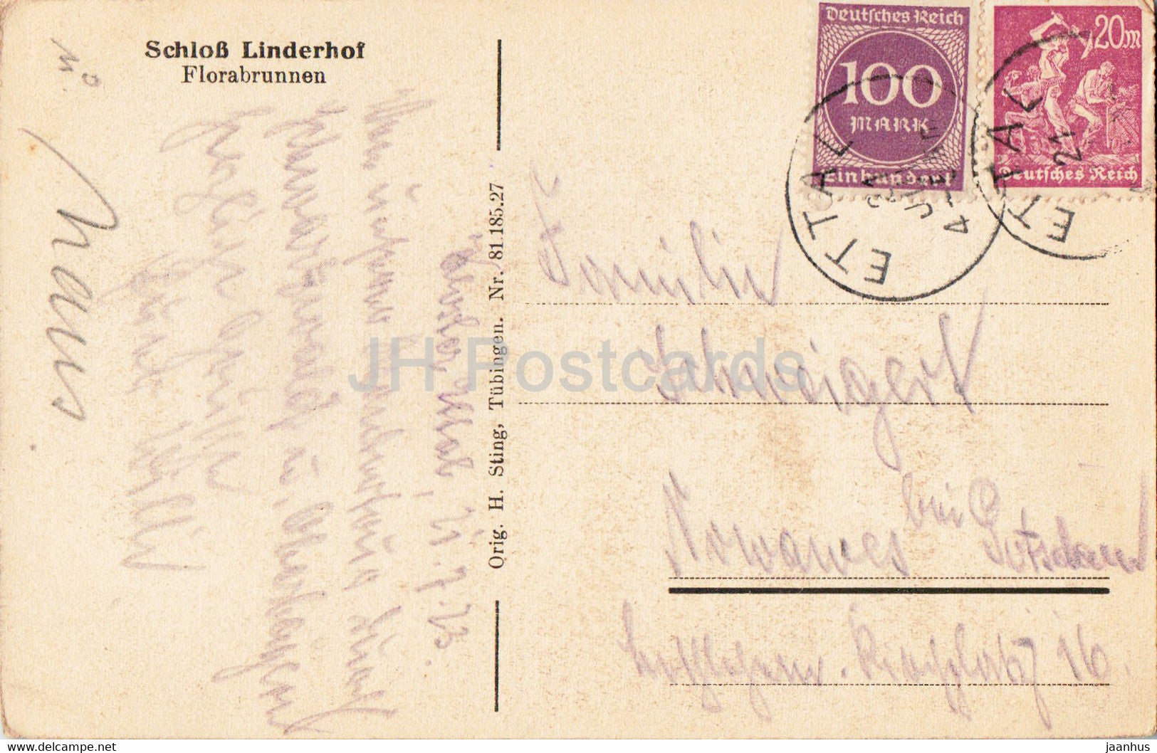 Schloss Linderhof - Florabrunnen - castle - old postcard - 1923 - Germany - used