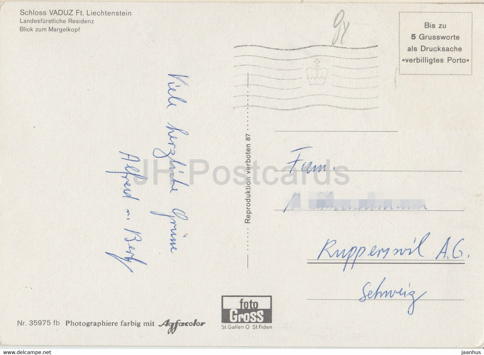 Schloss Vaduz Ft Liechtenstein - Landesfurstliche Residenz - Margelkopf - Liechtenstein - used