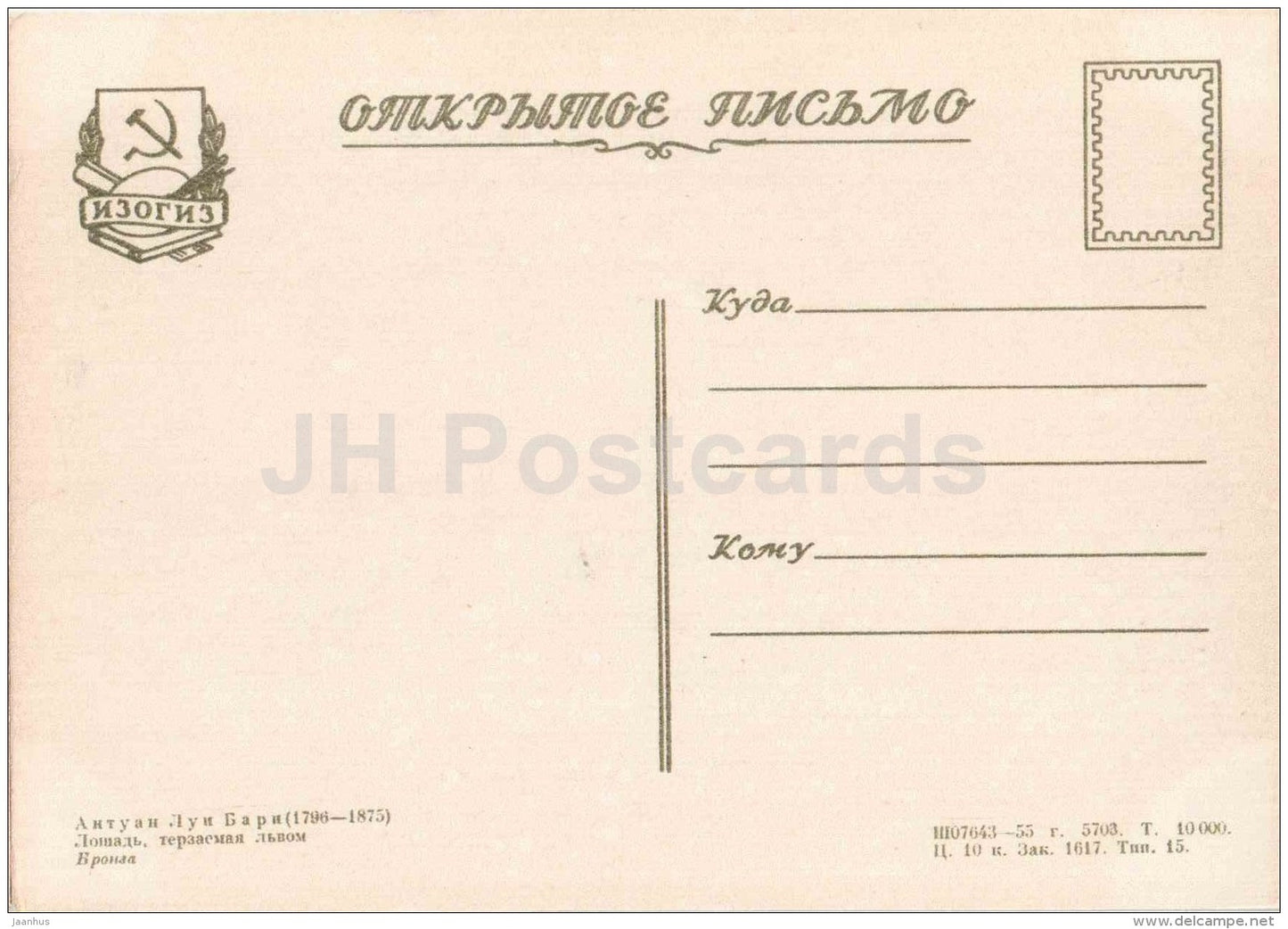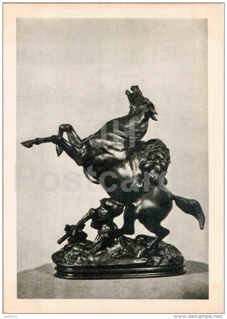 sculpture by Antoine-Louis Barye - Horse tormented lion - french art - unused