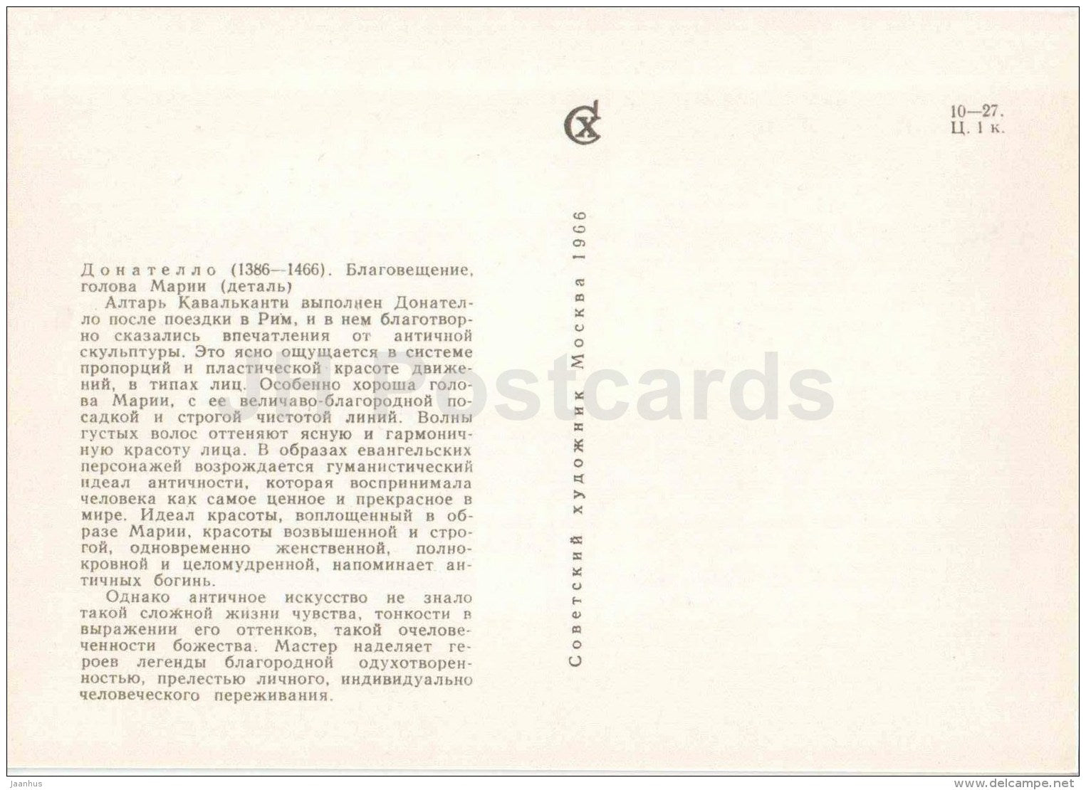 sculpture by Donatello - Annunciation , Portrait of St. Mary , detail - italian art - unused