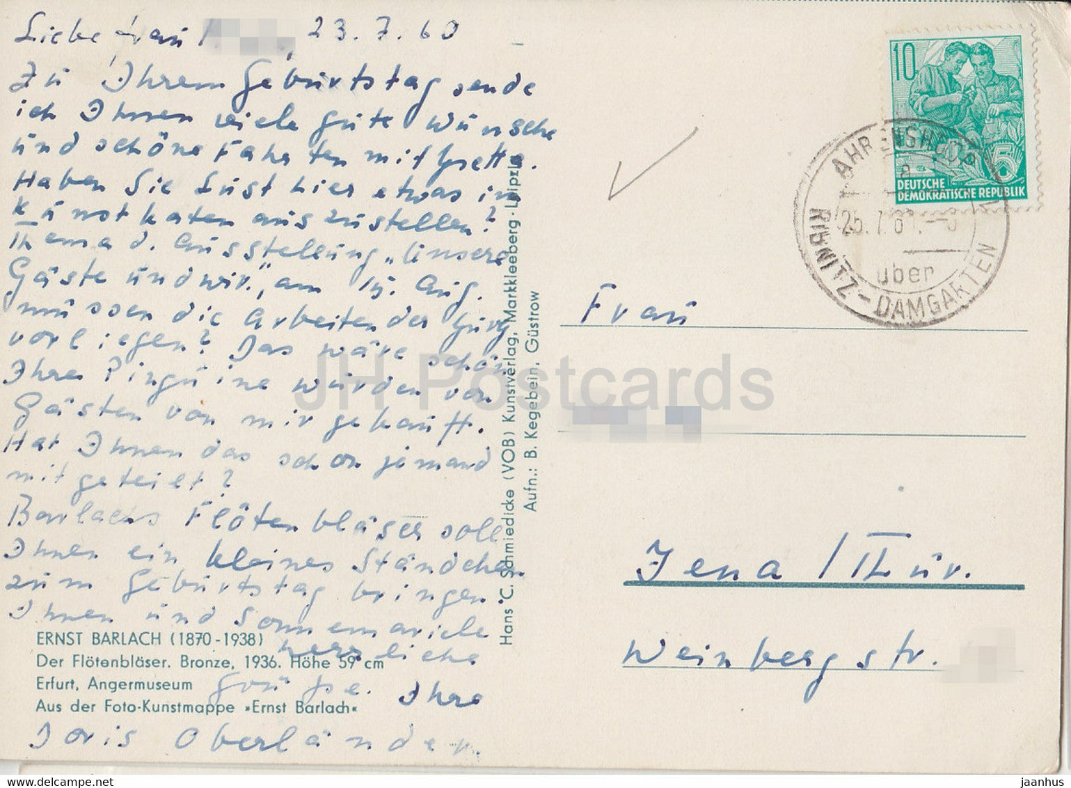 sculpture by Ernst Barlach - Der Flotenblaser - flute - German art - 1960 - Germany - used