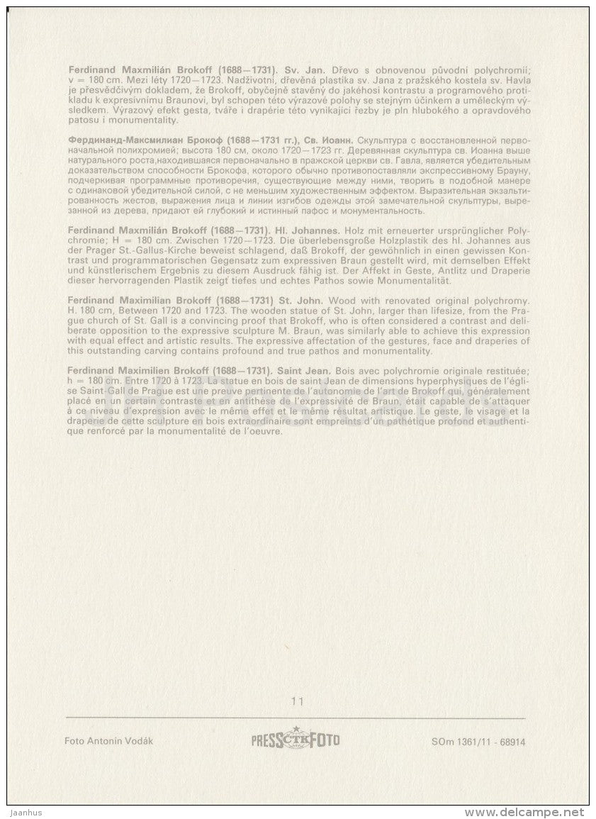 sculpture by Ferdinand Maxmilian Brokoff - St. John - Czech art - large format card - Czech - unused