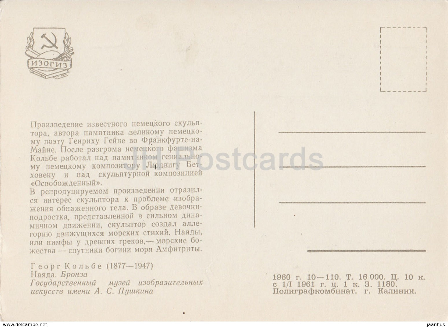 sculpture by Georg Kolbe - Mermaid - German art - 1960 - Russia USSR - unused