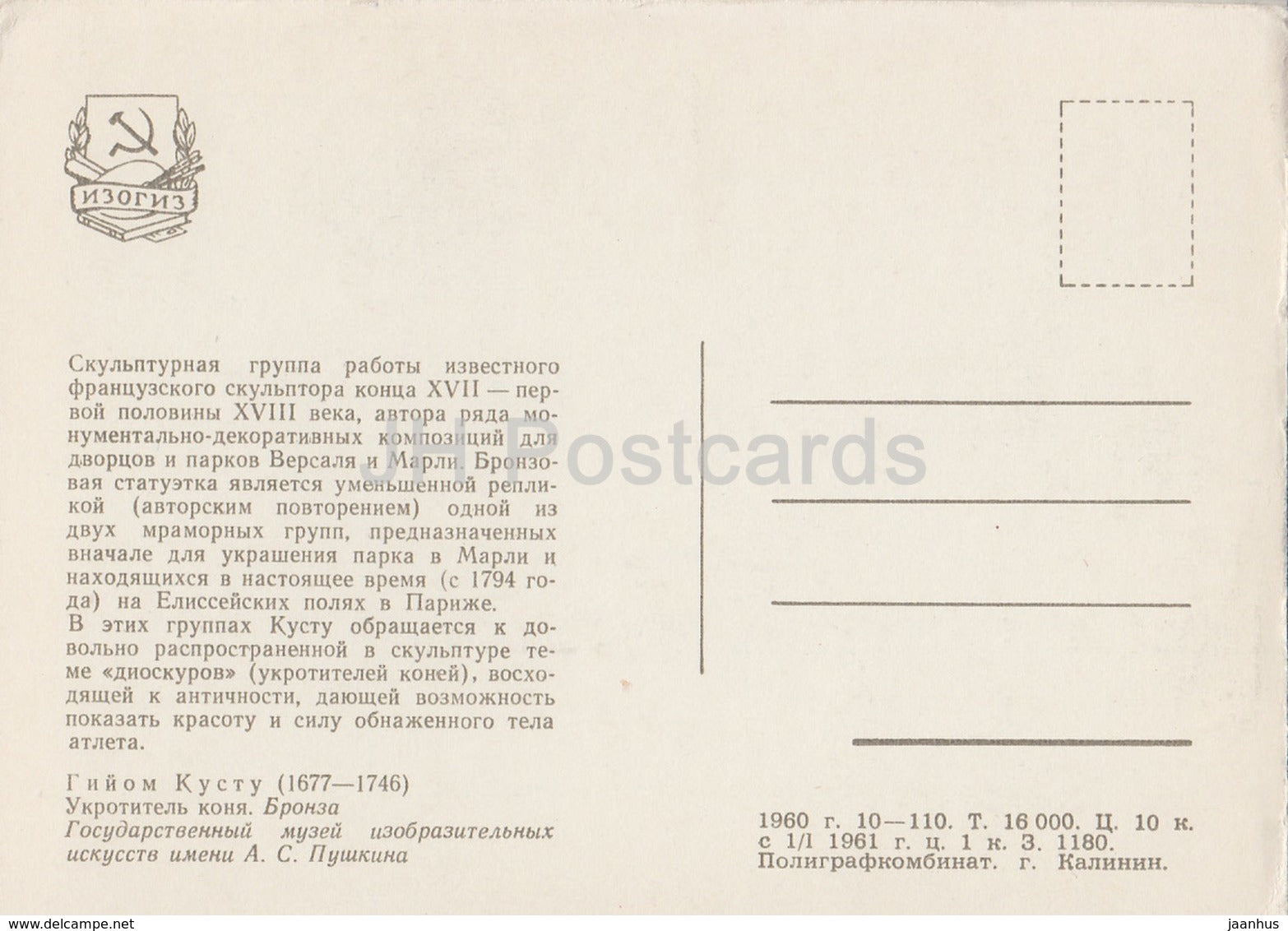 sculpture by Guillaume Coustou - Horse tamer - French art - 1960 - Russia USSR - unused