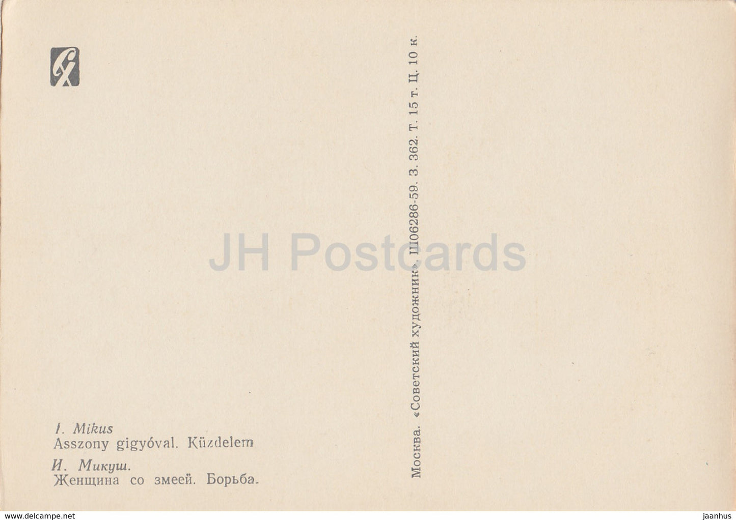 sculpture by I. Mikus - Woman with a Snake - 1 - Hungarian art - 1959 - Russia USSR - unused