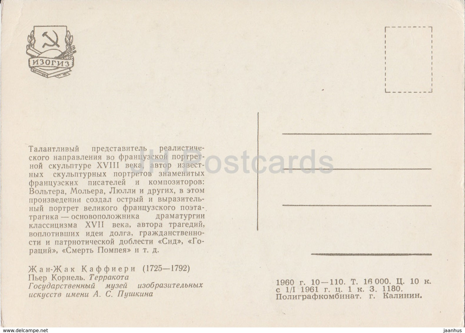 sculpture by Jean-Jacques Caffieri - Pierre Corneille - French art - 1960 - Russia USSR - unused