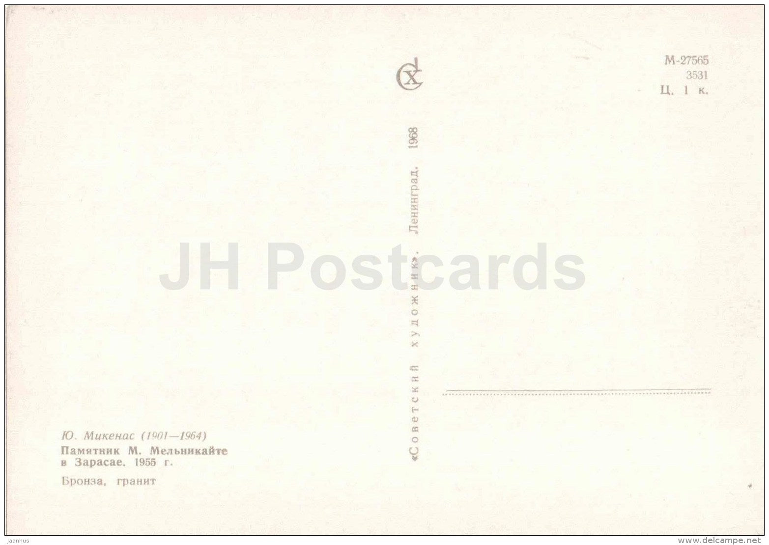 sculpture by Juozas Mikenas - monument to M. Melnikaite in Zarasai , 1955 - lithuanian art - unused