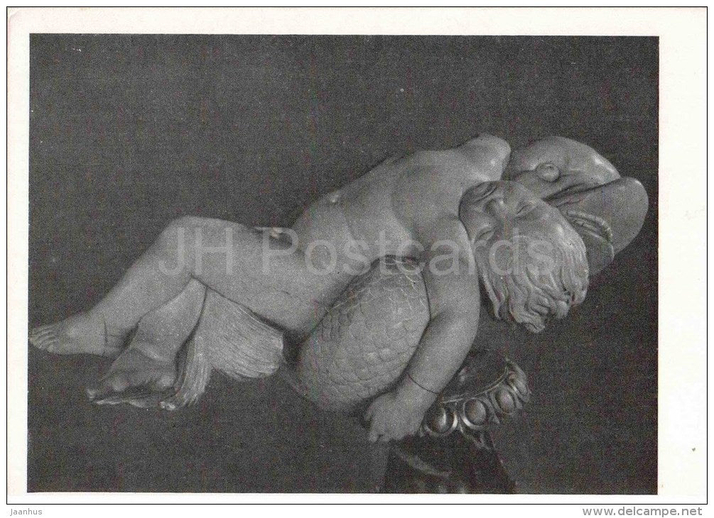 sculpture by Lorenzo Lorenzetti - Dead Boy on a Dolphin - italian art - unused