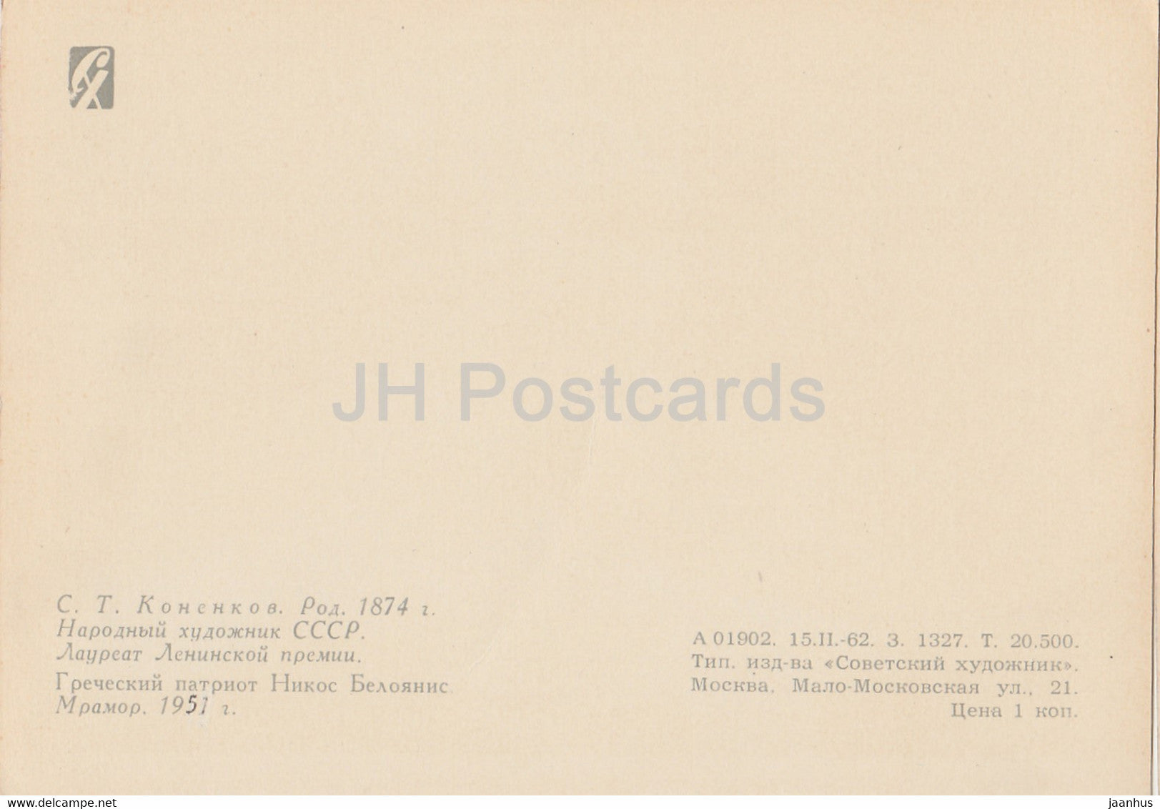 sculpture by S. Konenkov - Greek politician Nikos Beloyannis - Russian art - 1962 - Russia USSR - unused