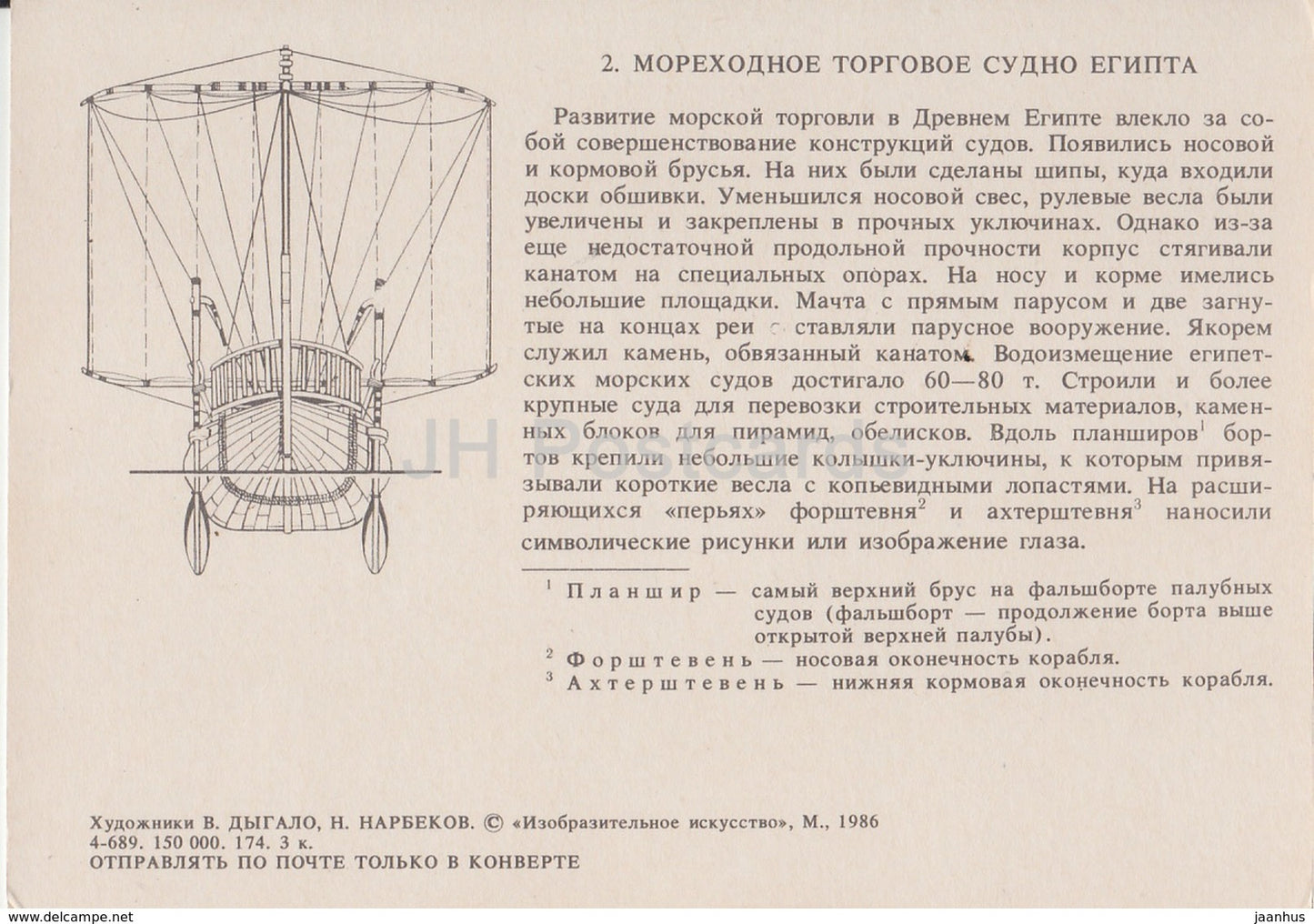 seafaring merchant ship of Ancient Egypt - illustration - 1986 - Russia USSR - unused