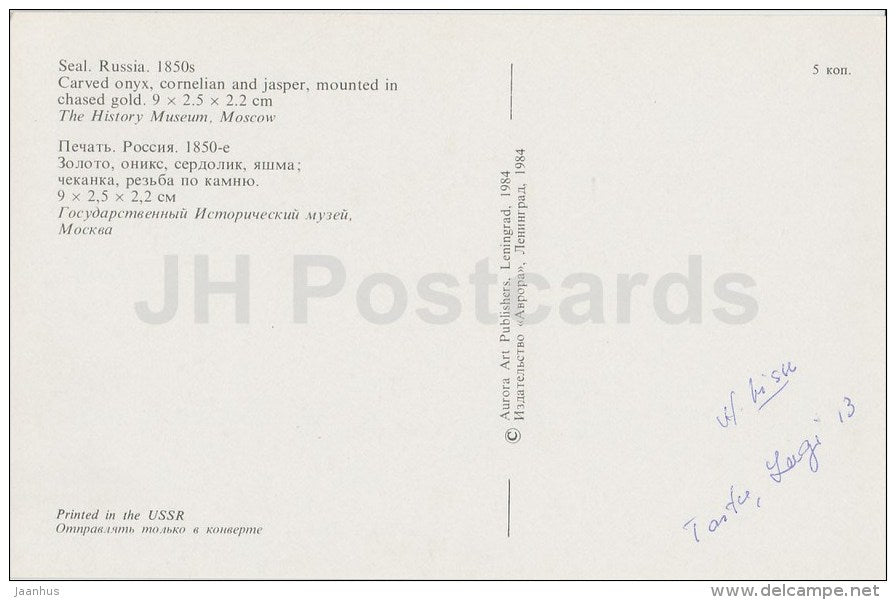 Seal - Russian and Soviet Jewellery - 1984 - Russia USSR - unused