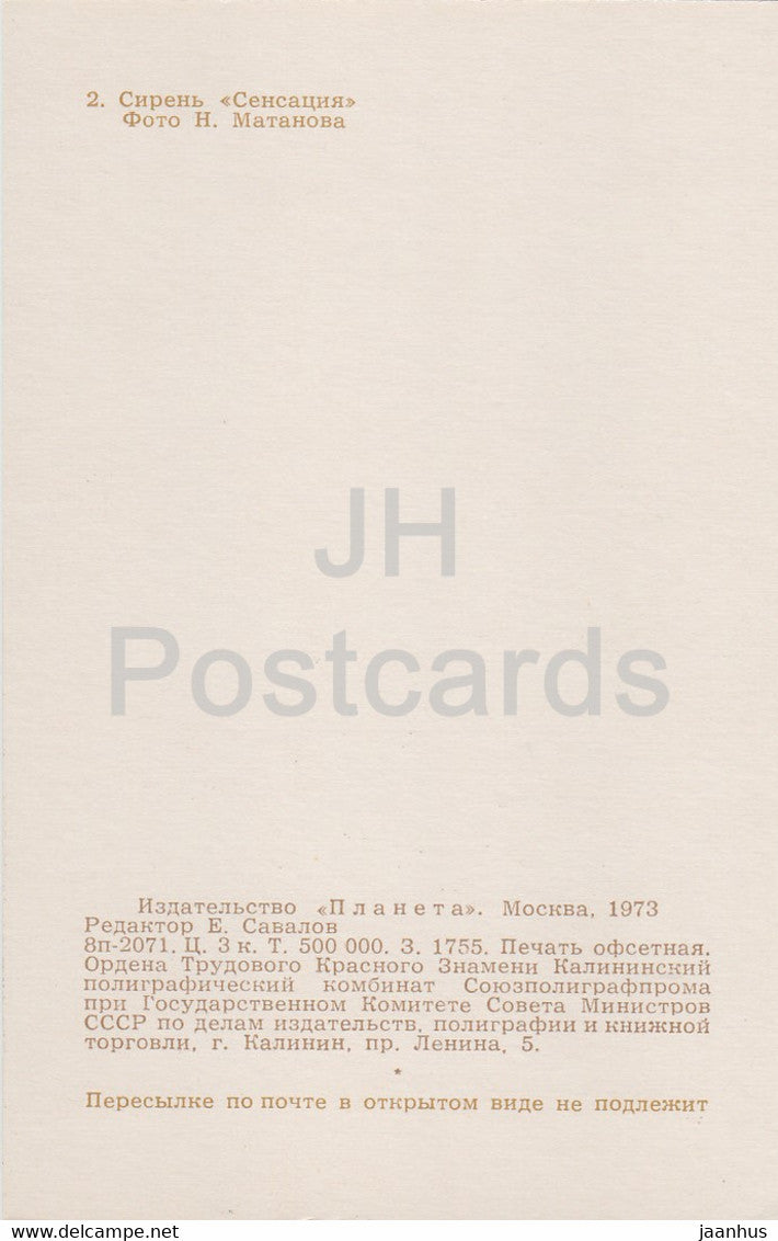 Sensation - Lilac - Flowers - 1973 - Russia USSR - unused