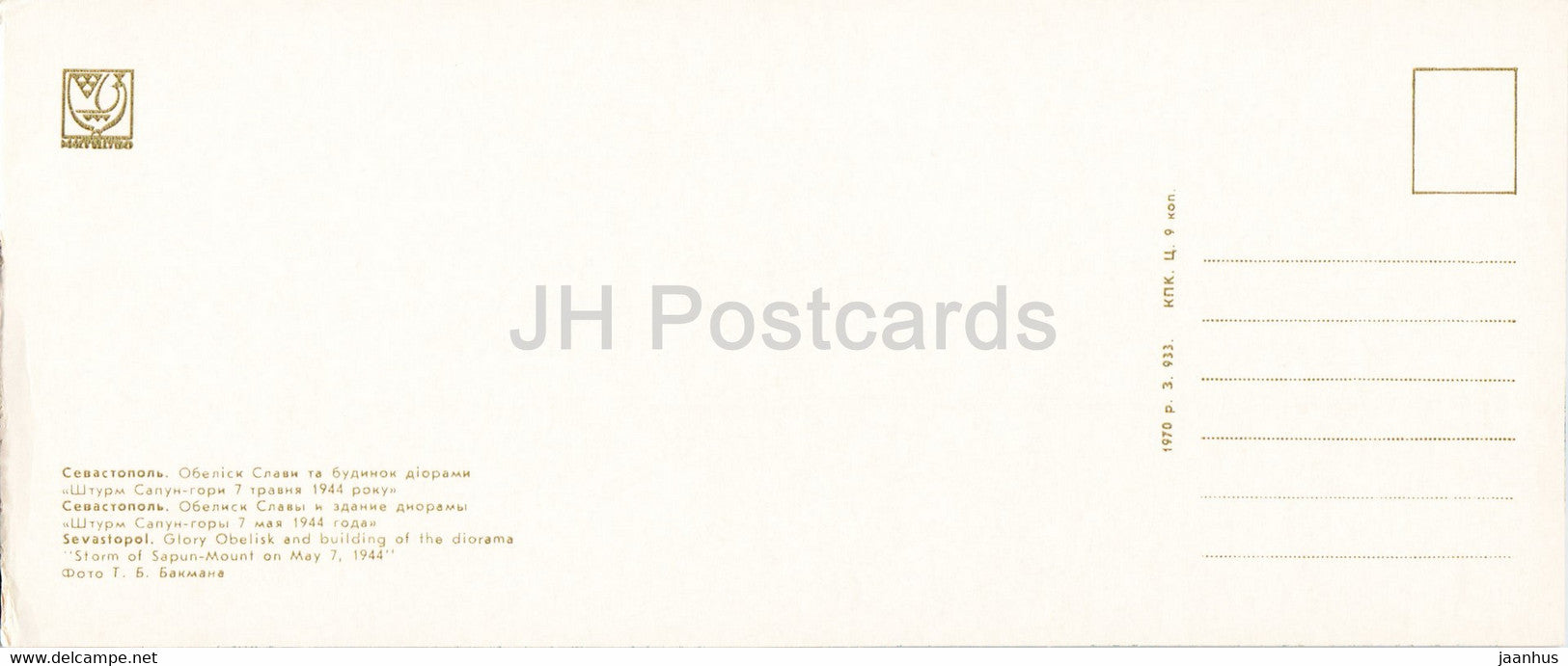 Sevastopol - Glory obelisk and the building of the diorama Storm of Sapun Mount - Crimea - 1970 - Ukraine USSR - unused