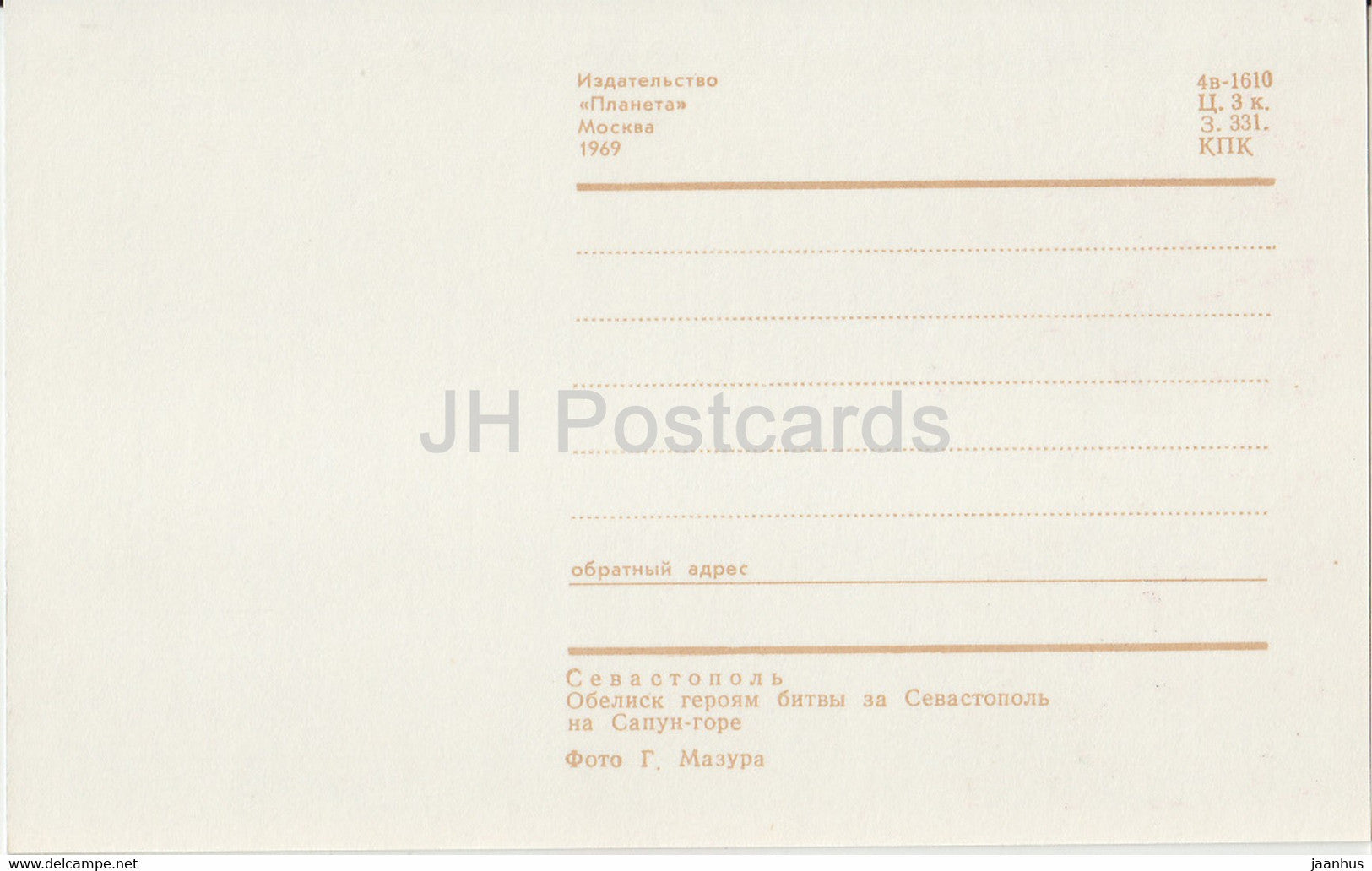 Sevastopol - obelisk to the heroes of the battle for Sevastopol on Sapun Mountain - 1969 - Ukraine USSR - unused