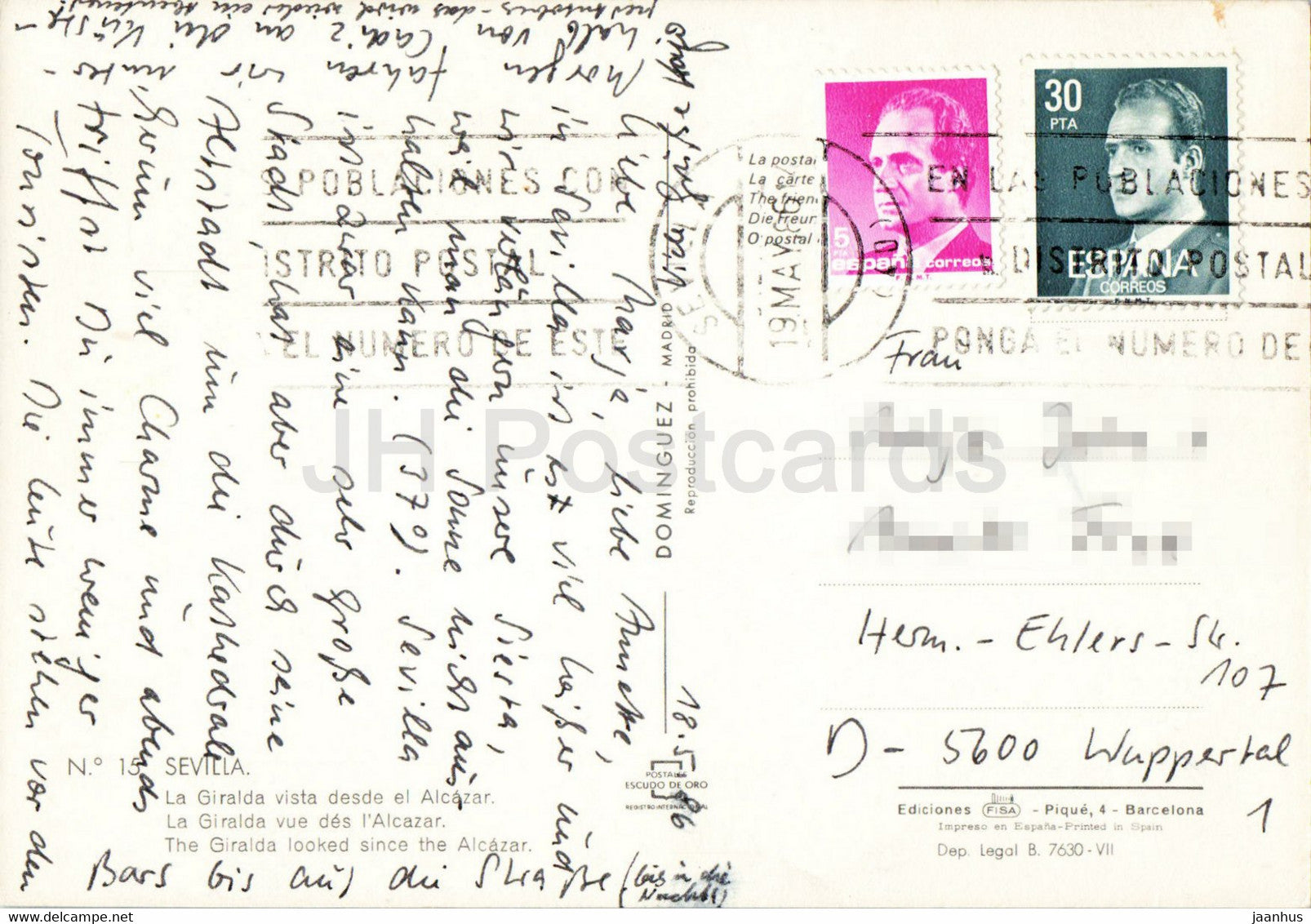 Sevilla - La Giralda vista desde el Alcazar - 15 - 1986 - Spain - used