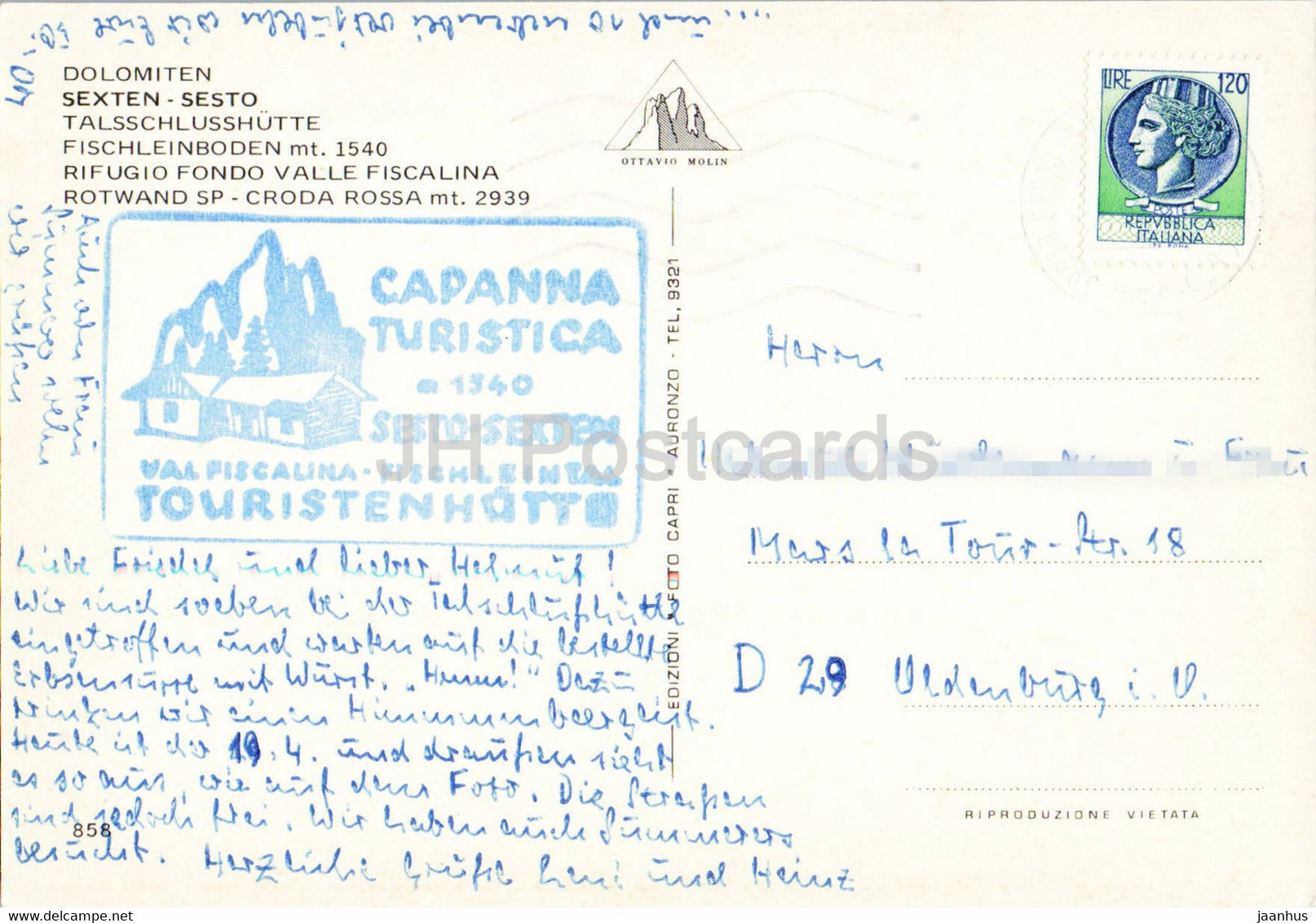 Sexten - Sesto - Talschlusshutte Fischleinboden 1540 m - Rifugio Fondo Valle Fiscalina - Rotwand - Italy - used