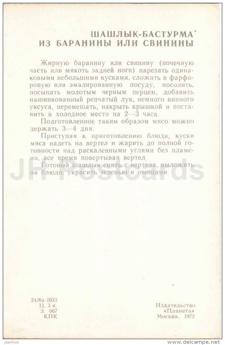 Shashlik - Barbecue basturma - Georgian cuisine - dishes - Georgia - 1972 - Russia USSR - unused