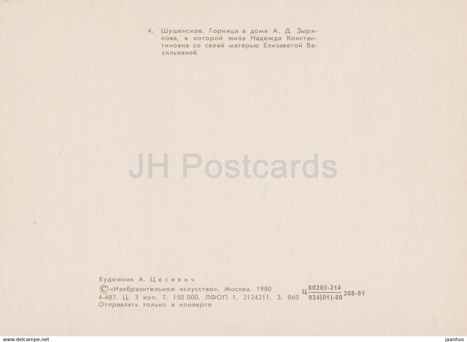 Shushenskoe - Upper room of Peasant Zyryanov house where Krupskaya lived - 1980 - Russia USSR - used
