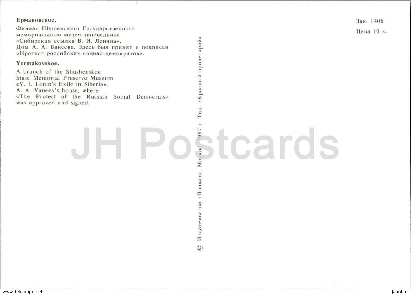 Shushenskoye - Lenin's Exile in Siberia Museum - A. Vaneev's House - 1987 - Russia USSR - unused