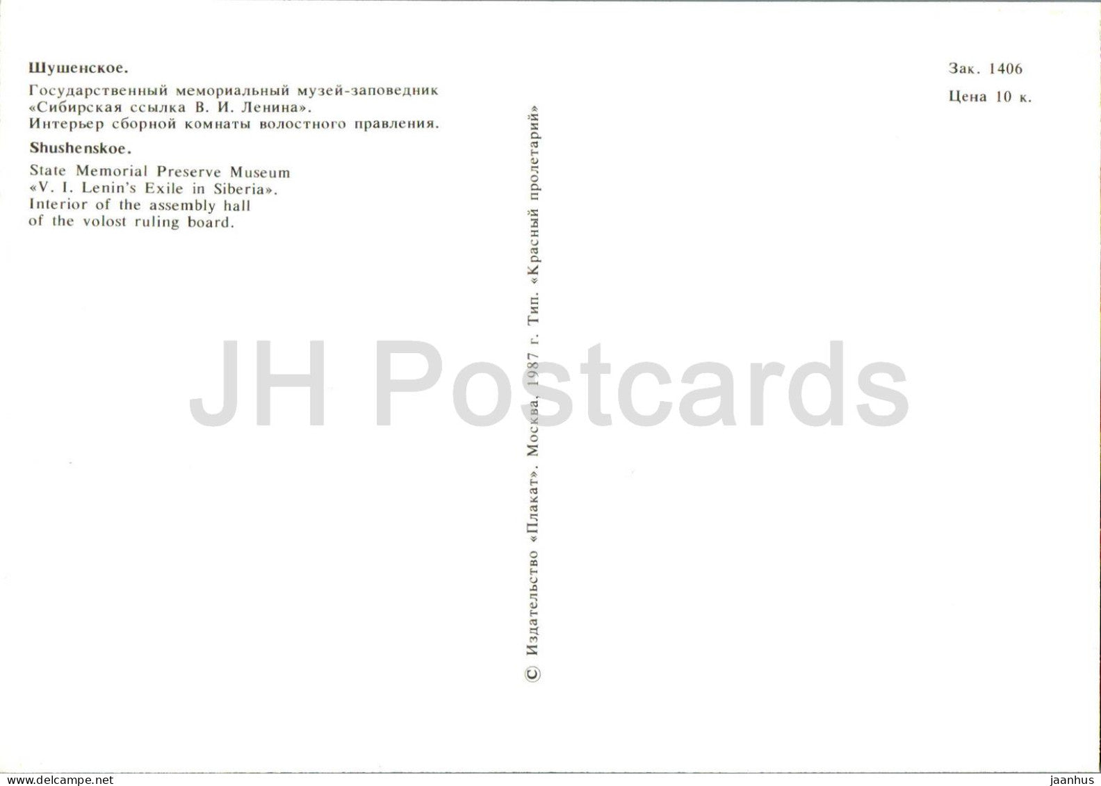 Shushenskoye - Lenin's Exile in Siberia Museum - Interior of the assembly hall - 1987 - Russia USSR - unused