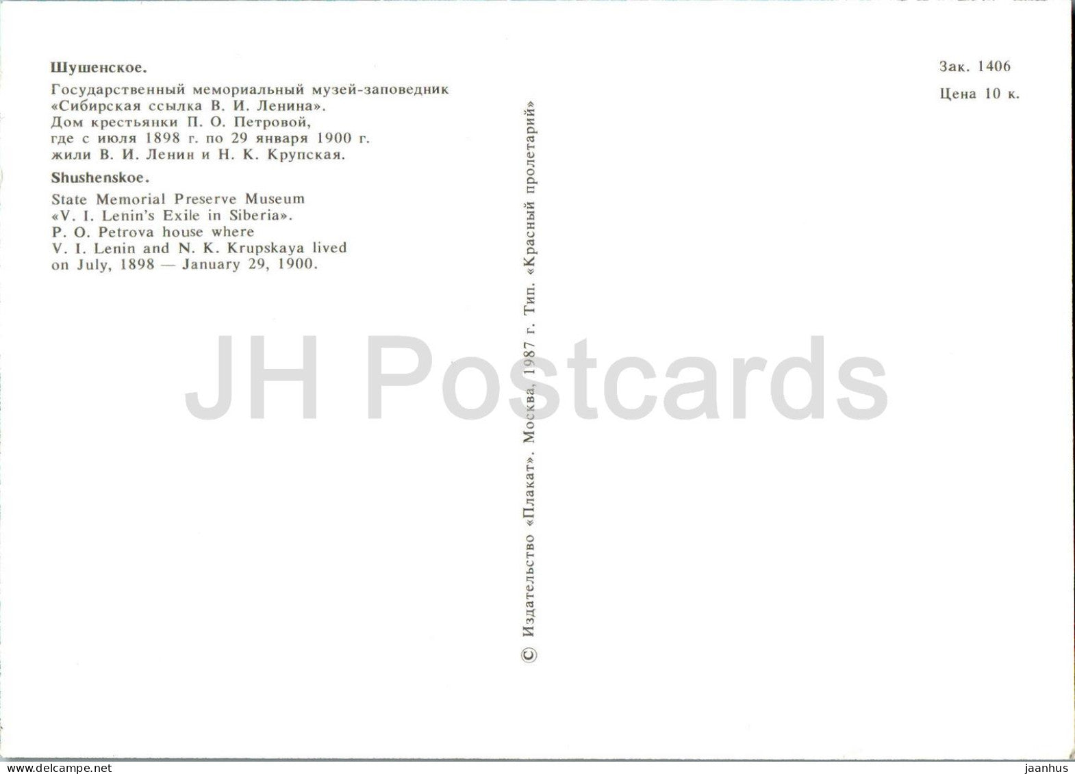 Shushenskoye - Lenin's Exile in Siberia Museum - P. Petrova's House - 1987 - Russia USSR - unused