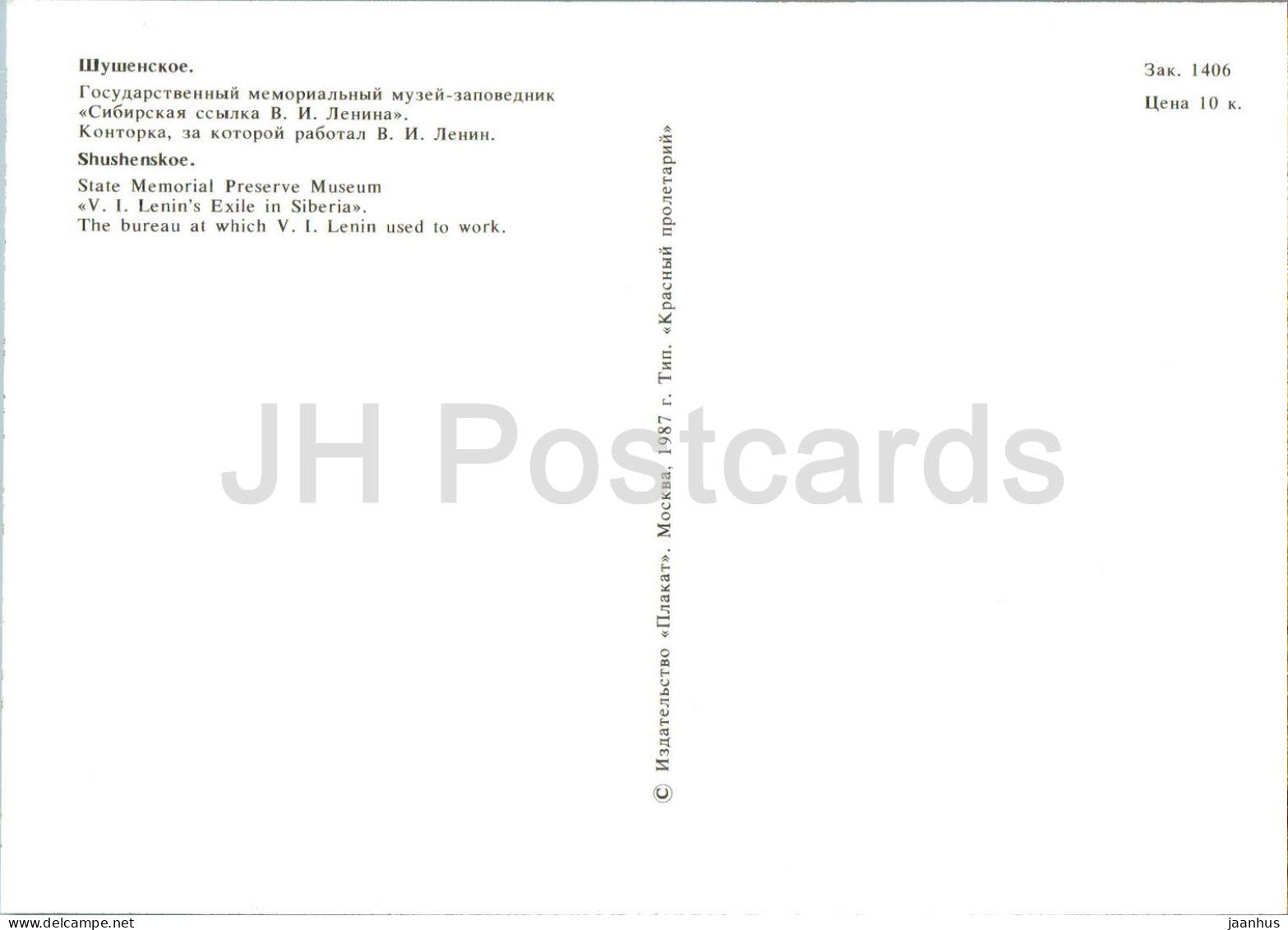 Shushenskoye - Lenin's Exile in Siberia Museum - The Bureau at which Lenin used to work - 1987 - Russia USSR - unused