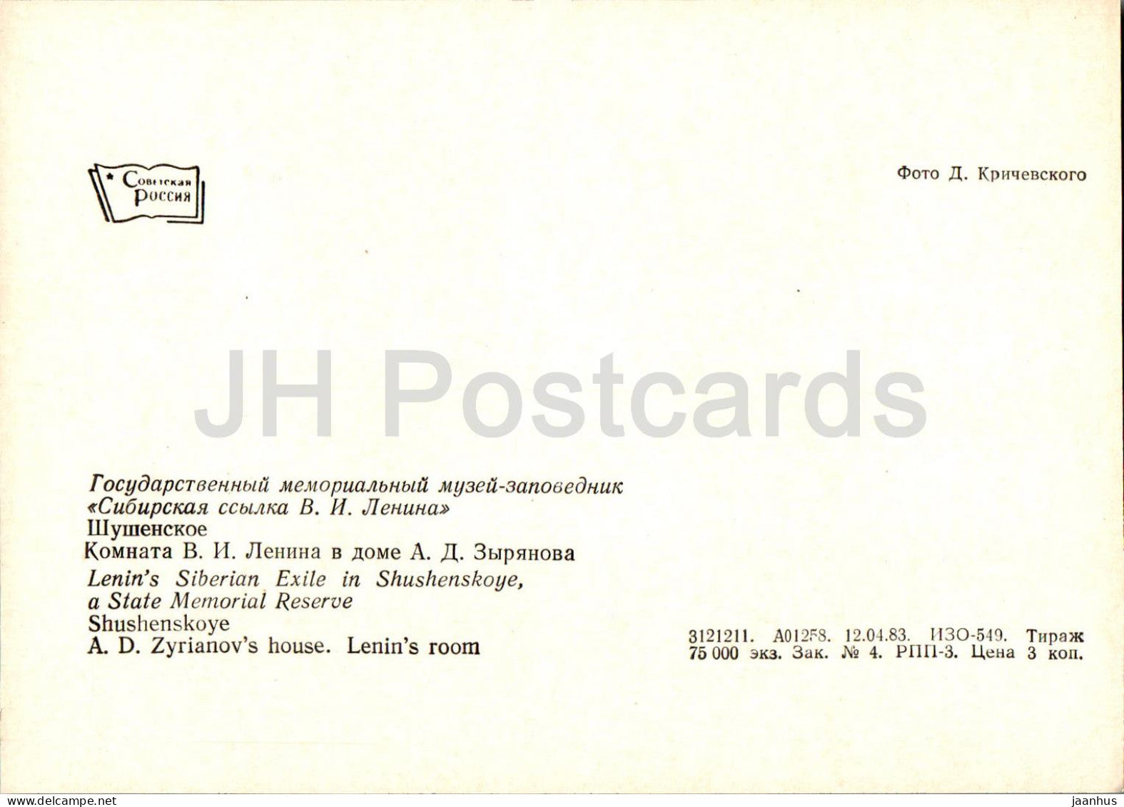 Shushenskoye - Lenin's Siberian Exile - A. Zyrianov's House - Lenin's room - 1983 - Russia USSR - unused