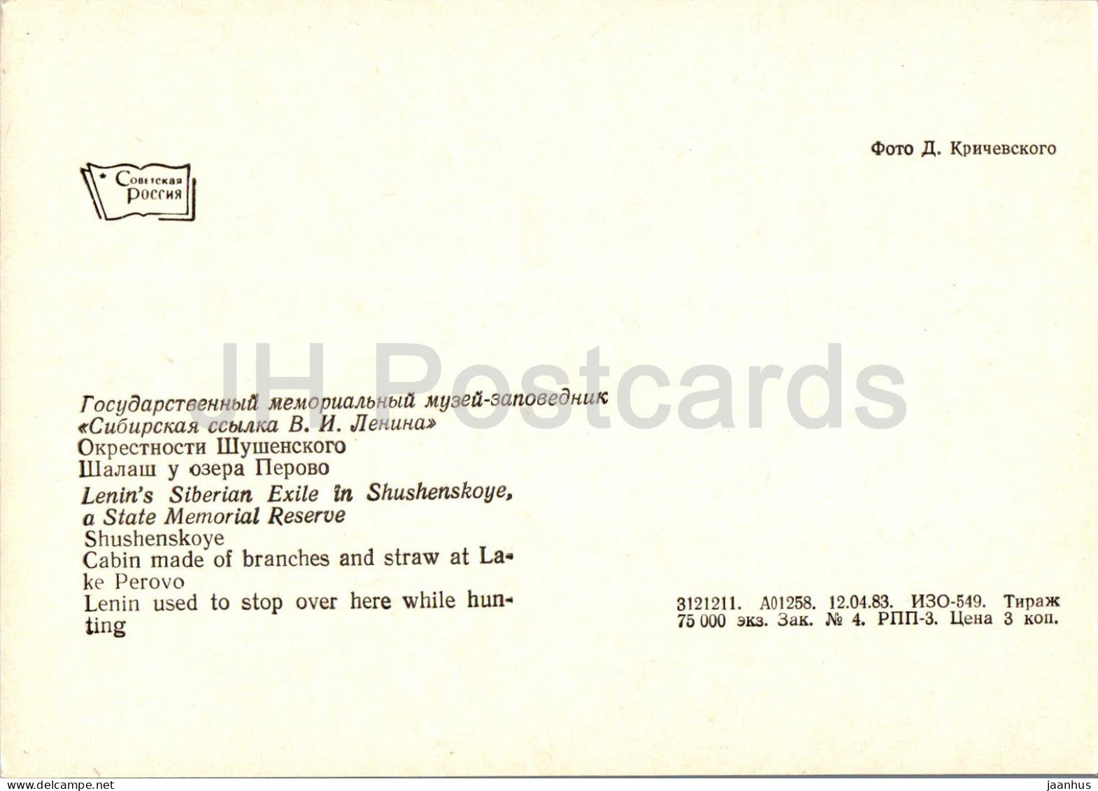 Shushenskoye - Lenin's Siberian Exile - Cabin made of branches at lake Perovo - 1983 - Russia USSR - unused