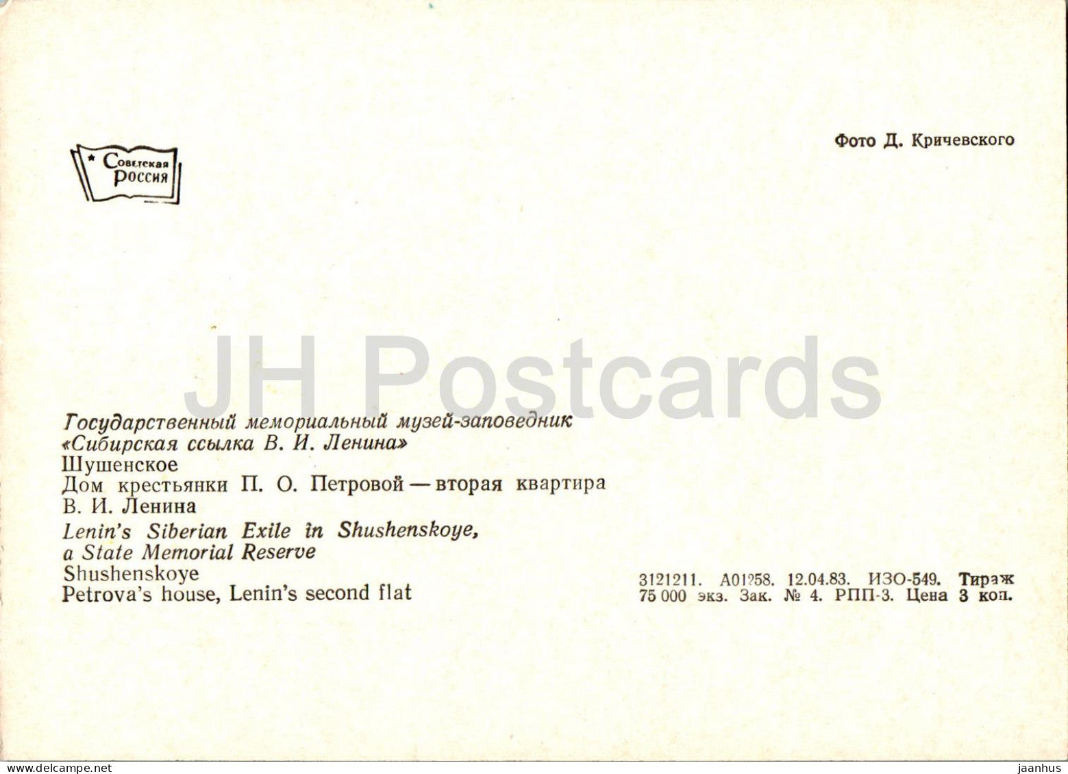 Shushenskoye - Lenin's Siberian Exile - Petrova's House - Lenin's second flat - 1983 - Russia USSR - unused