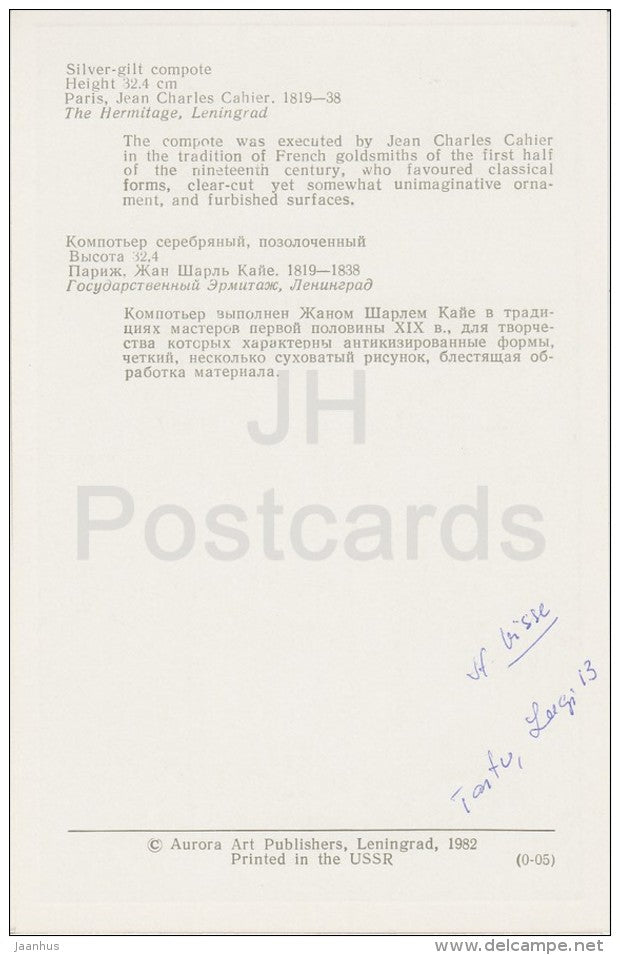 Silver-Gilt Compote , Paris - Western European Silver from Hermitage - 1982 - Russia USSR - unused