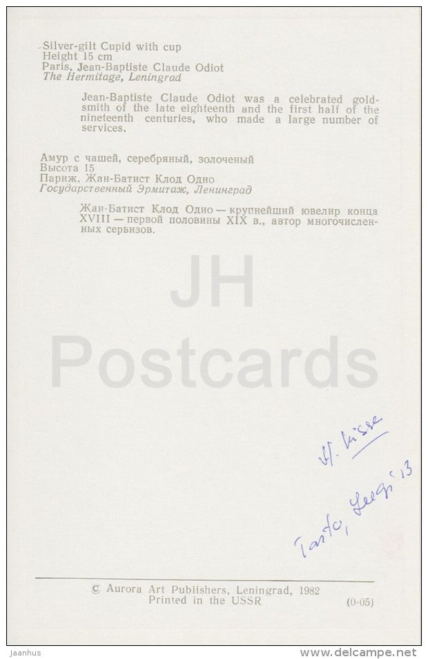Silver-gilt Cupid with Cup , Paris - Western European Silver from Hermitage - 1982 - Russia USSR - unused