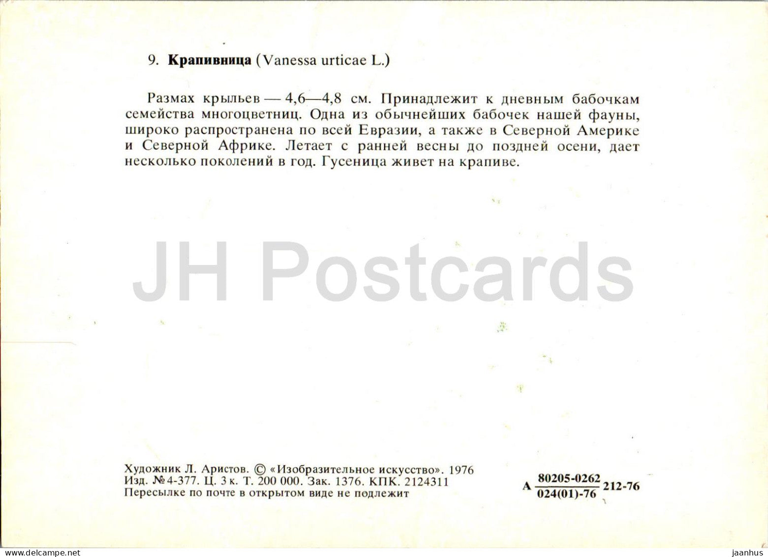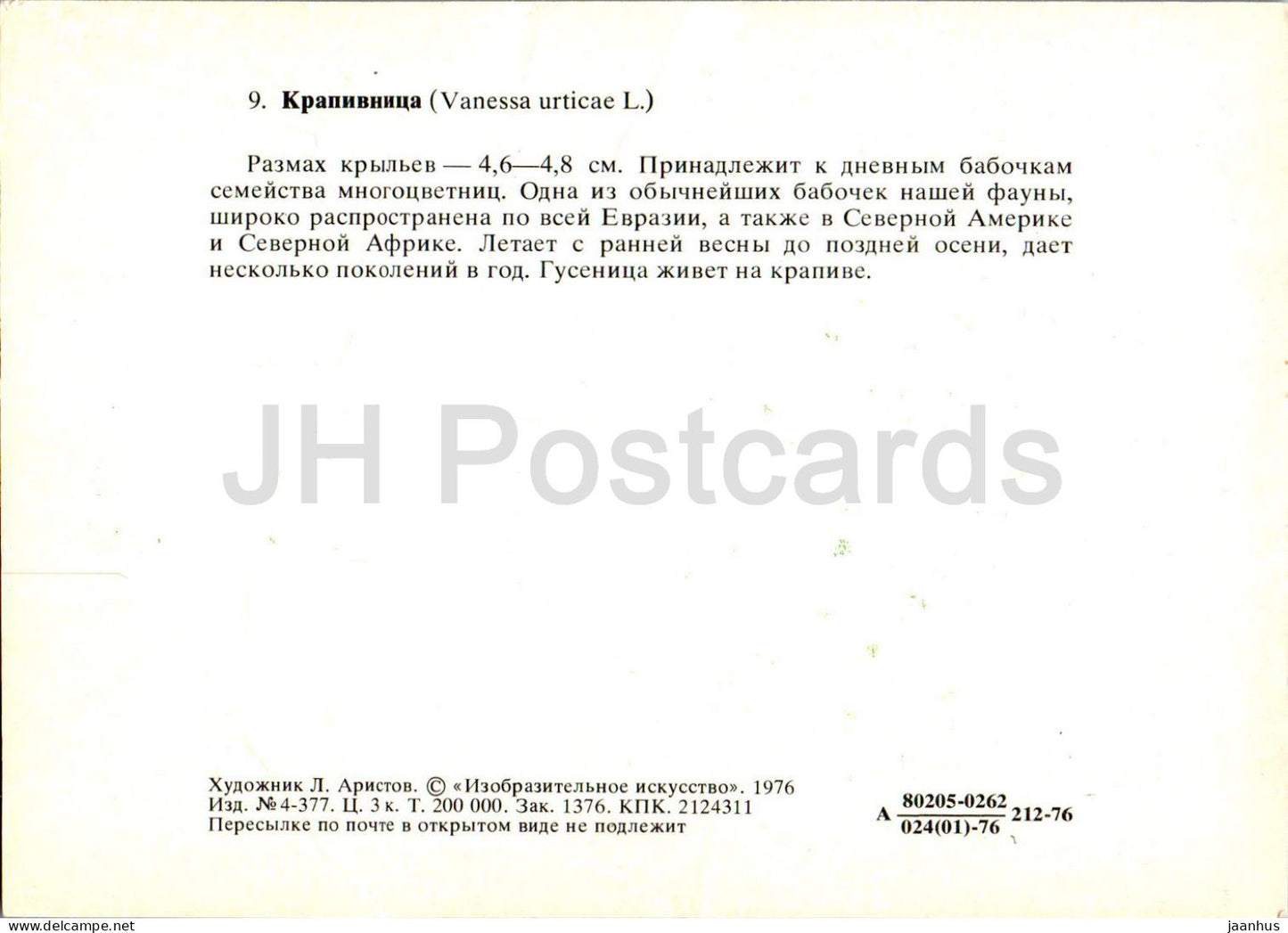 Small tortoiseshell - Vanessa urticae - butterfly - butterflies - 1976 - Russia USSR - unused