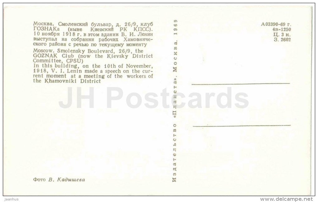 Smolensky boulevard - the Goznak club - Moscow - 1969 - Russia USSR - unused