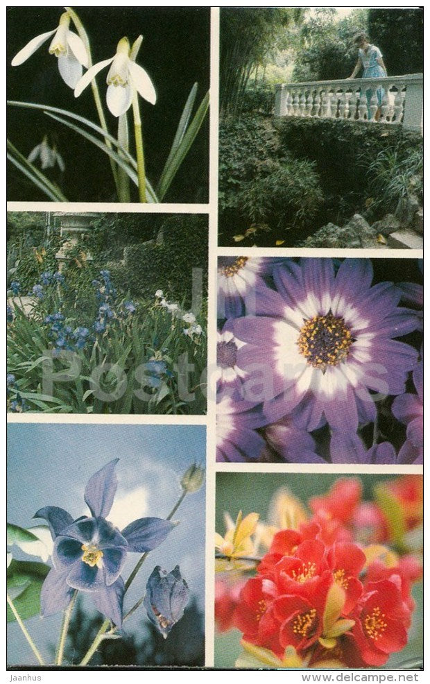 snowdrop - iris - cineraria - Aquilegia - Nikitsky Botanical Garden - Crimea - 1989 - Ukraine USSR - unused